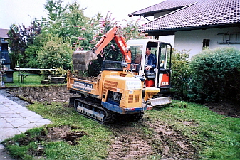 Der Aushub wird auf engstem Raum mit speziellen Baumaschinen problemlos realisiert